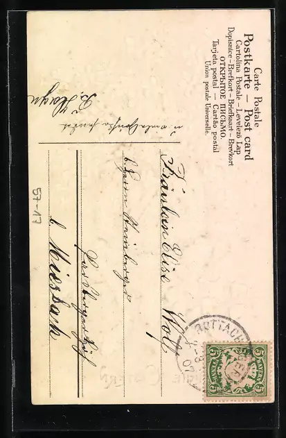 alte Ansichtskarte, gelaufen 1907, Bugspur oben re., guter Zustand