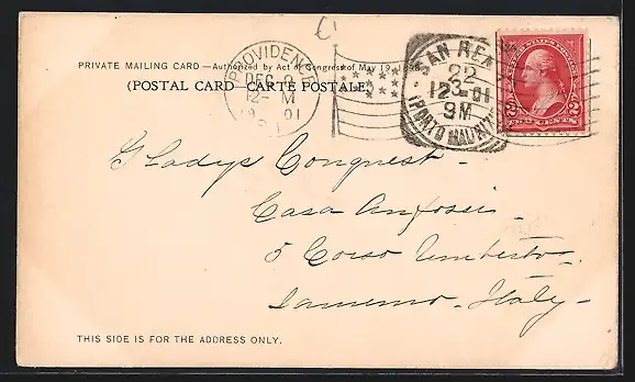 Personenbezogene Daten auf der Rückseite der Karte wurden durch blauen Textmarker unkenntlich gemacht. Die blauen Stellen sind auf die Vorderseite durchgeweicht und wirken sich negativ auf das Postkartenfoto aus