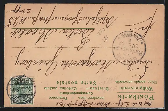 gelaufen 1902, Eckknicke oben li. und unten re., Bugspur oben li., guter Zustand