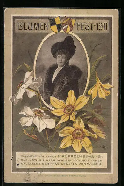 Künstler-AK Blumenfest 1911, Gräfin von Wedel im Portrait