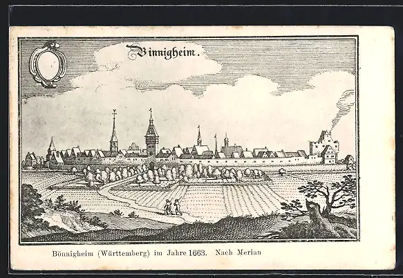 Künstler-AK Bönnigheim / Württemberg, Ortsansicht 1663, Nach Merian