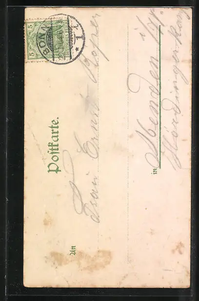 alte Ansichtskarte, gelaufen 1904, Bugspur re. mittig, guter Zustand