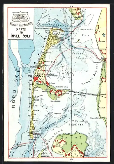 Künstler-AK Braderup /Sylt, Landkarte mit Archsum, Mosum Odde und Jordsand