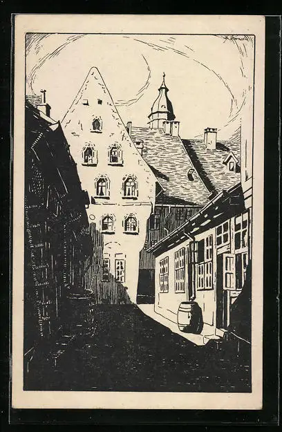 Künstler-AK Braunschweig, Alter Hof auf der Reichsstrasse