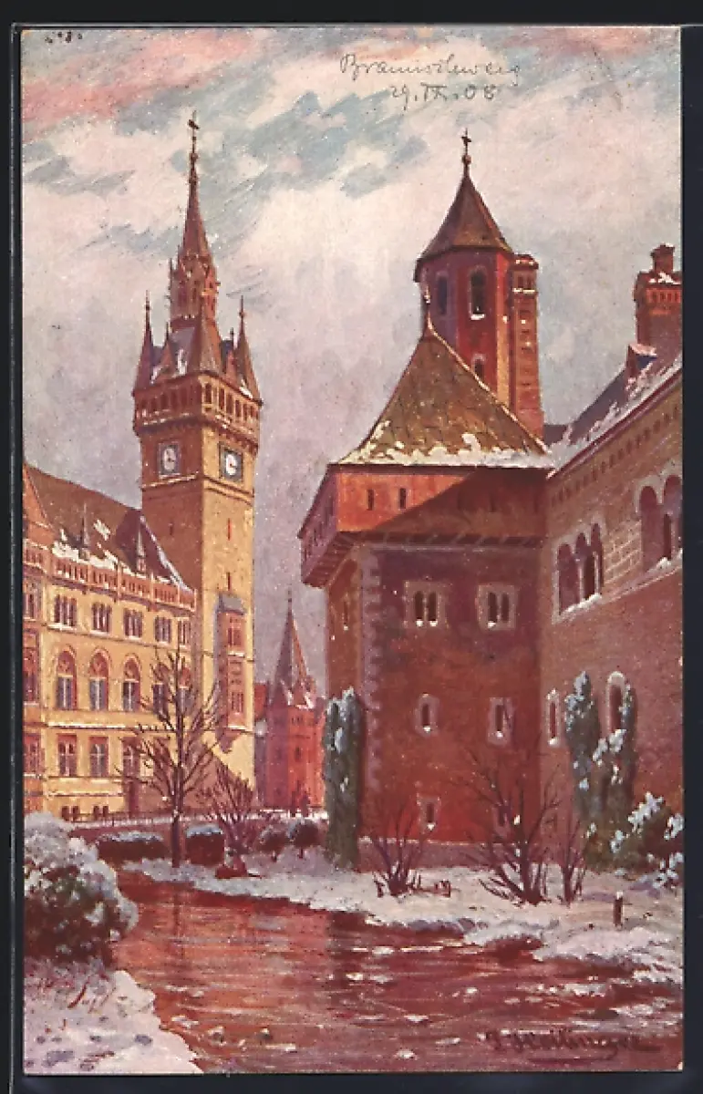 Künstler-AK Braunschweig, Partie am Burggraben
