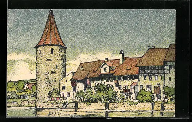 Künstler-AK Bremgarten, Partie am Hexenturm