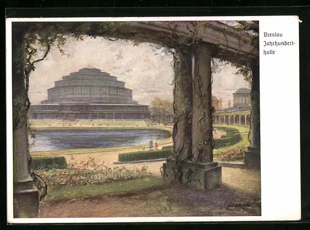 Künstler-AK Breslau, Blick zur Jahrhunderthalle