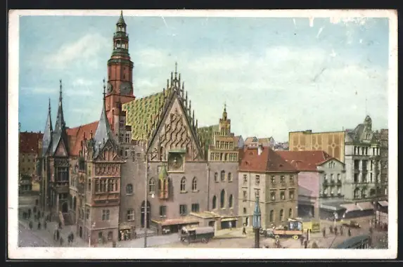 Künstler-AK Breslau, Partie am Rathaus