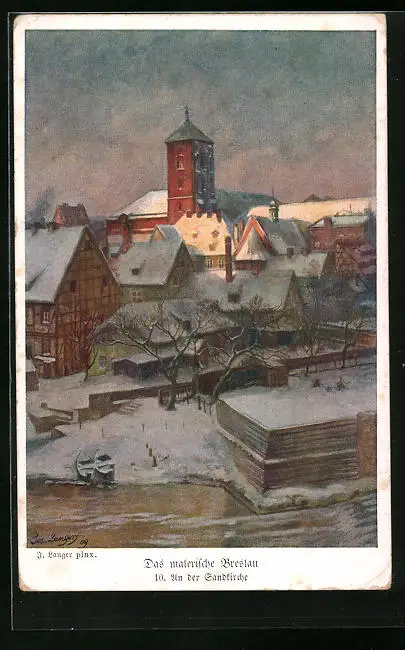Künstler-AK Breslau, Stadtkirche im letzten Licht der Wintersonne
