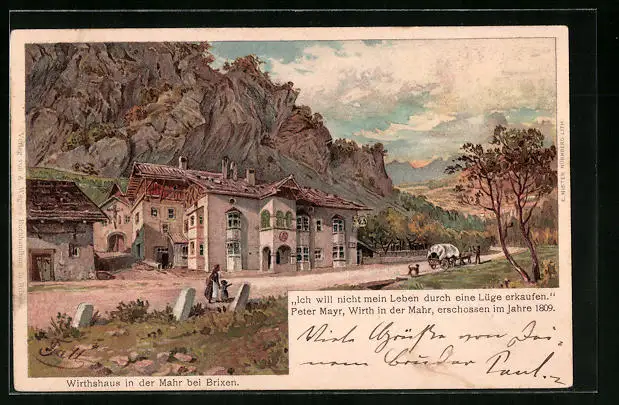 Künstler-AK Brixen, Gasthaus in der Mahr