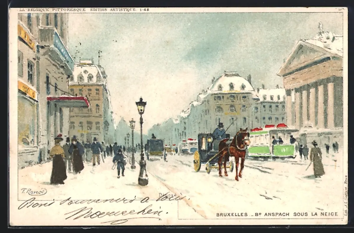 Künstler-AK Brüssel / Bruxelles, Anspach sous la Neige
