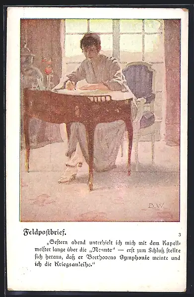 Künstler-AK Brynolf Wennerberg: Kriegsanleihe, Frau schreibt einen Feldpostbrief