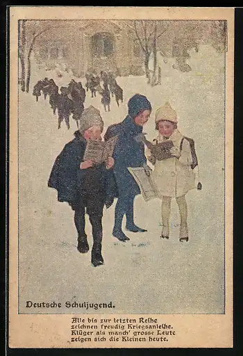 Künstler-AK Brynolf Wennerberg: Schulkinder zeichnen Kriegsanleihe