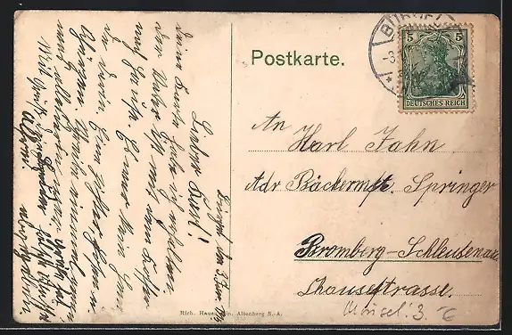 alte Ansichtskarte, gelaufen 1915, Eckknicke li. oben u. re. unten, guter Zustand