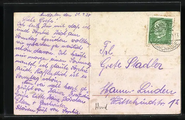 alte Ansichtskarte, gelaufen 1931, Eckknick unten re., guter Zustand