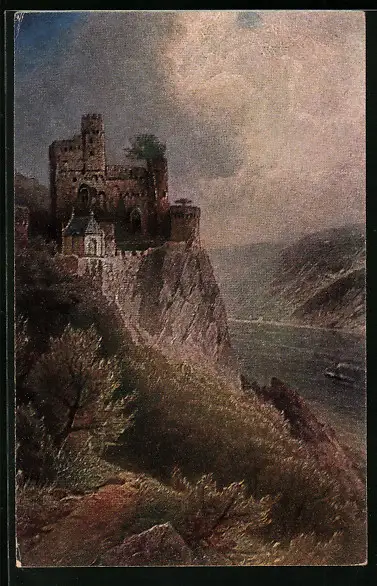 Künstler-AK Burg Rheinstein am Rhein