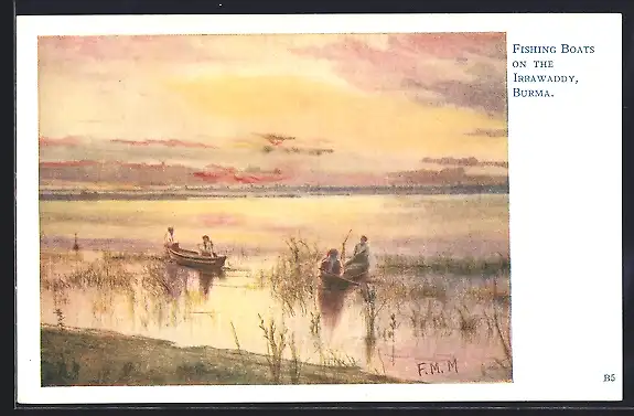 Künstler-AK Burma, Fishing boats on the Irrawaddy