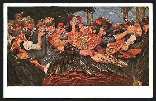 Künstler-AK C. Bantzer: Hessischer Bauerntanz, Trachten