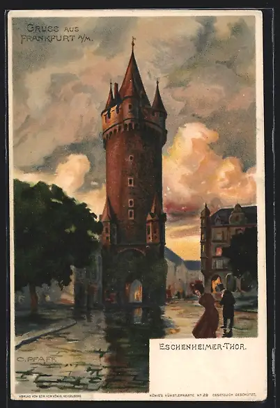 Künstler-AK C. Pfaff: Frankfurt a. M., Eschenheimer Thor mit nasser Strasse