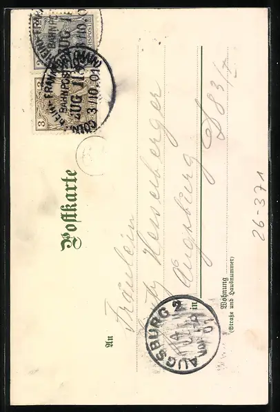 gelaufen 1901, Klebe- u. Papierreste mittig li., guter Zustand