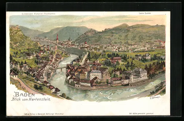 Künstler-AK C. Steinmann, Nr. 2224: Baden, Blick vom Hertenstein