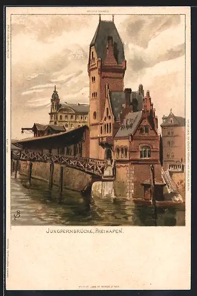 Künstler-AK C.Biese: Alt-Hamburg, Jungfernbrücke am Freihafen
