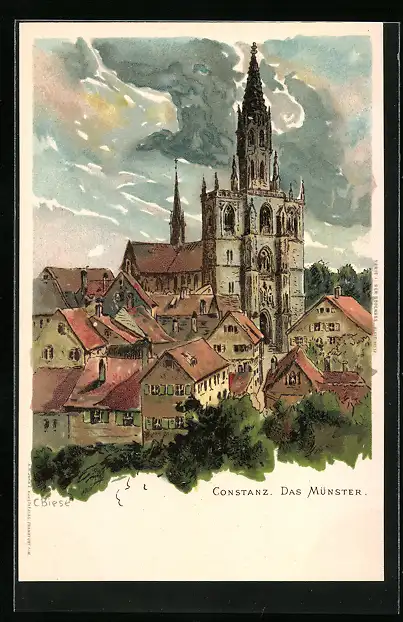 Künstler-AK C.Biese: Konstanz, Ortspartie mit Münster