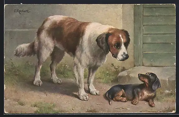 Künstler-AK C.Reichert: Bernhardiner u. Dackel