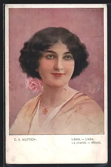 Künstler-AK Camil Vladislav Muttich: Liebe, Dame mit Rose