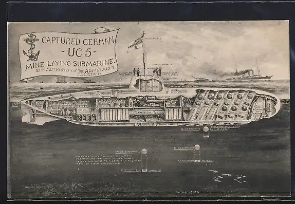 Künstler-AK Captured German Mine Laying Submarine UC 5