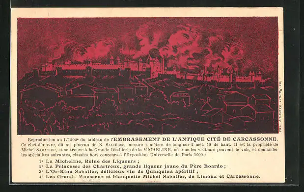 Künstler-AK Carcassonne, Darstellung der Stadt in Flammen