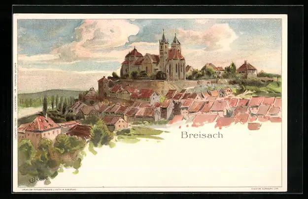 Künstler-AK Carl Biese: Breisach, Teilansicht mit Kirche