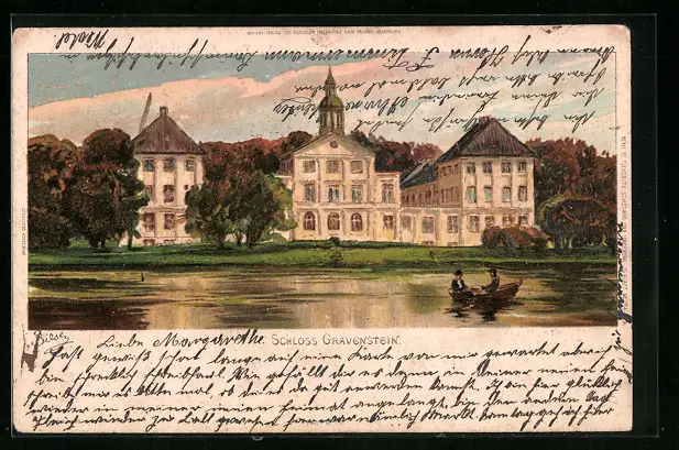 Künstler-AK Carl Biese: Gravenstein, Schloss Gravenstein mit Bootspartie
