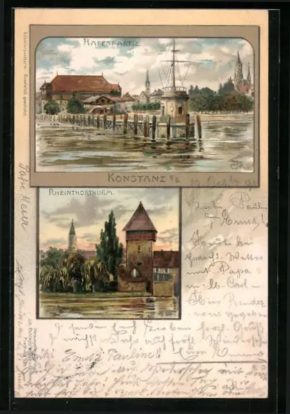Künstler-AK Carl Biese: Konstanz a. B., Rheinthorturm, Hafenpartie