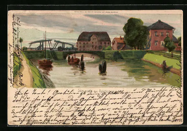 Künstler-AK Carl Biese: Rendsburg, Partie an der Schleuse