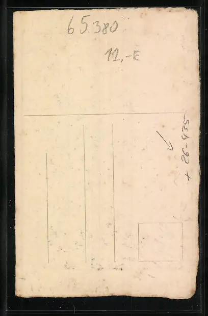 Personenbezogene Daten auf der Rückseite der Karte wurden durch blauen Textmarker unkenntlich gemacht. Die blauen Stellen sind auf die Vorderseite durchgeweicht und wirken sich negativ auf das Postkartenfoto aus