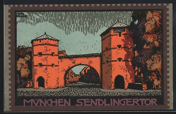 Künstler-AK Carl Kunst: München-Au, Blick auf das Sendlingertor