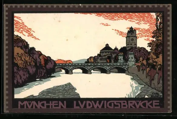 Künstler-AK Carl Kunst: München, Ludwigsbrücke