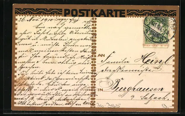 alte Ansichtskarte, gelaufen 1910, guter Zustand