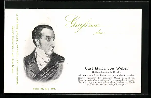 Künstler-AK Carl Maria von Weber, Hofkapellmeister in Dresden