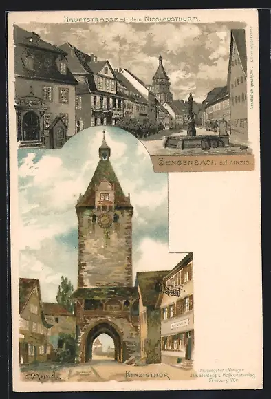 Künstler-AK Carl Münch: Gengenbach, Kinzigtor, Hauptstrasse mit dem Nicolausturm