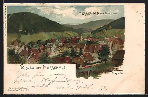 Künstler-AK Carl Münch: Herrenalb, Teilansicht mit Kurhaus