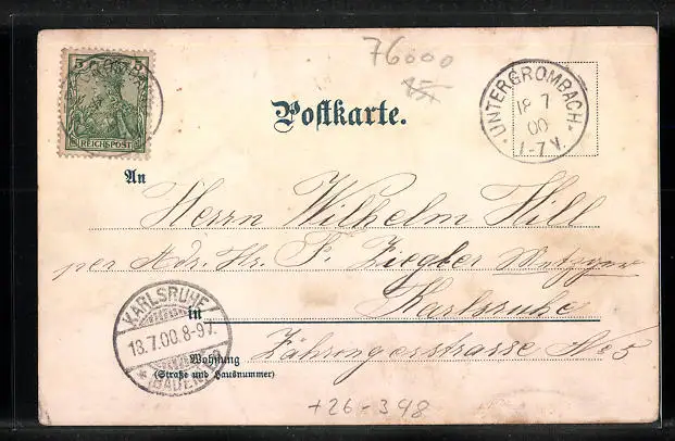alte Ansichtskarte, gelaufen 1900, guter Zustand