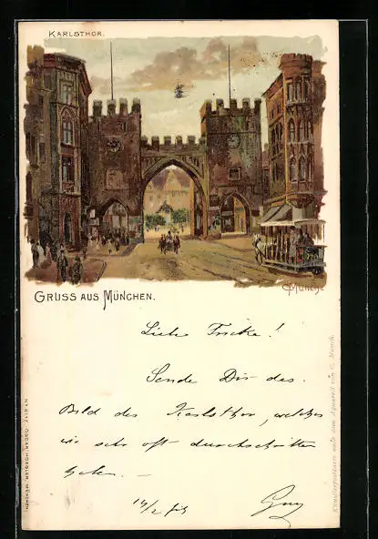 Künstler-AK Carl Münch: München, Karlsthor mit Pferdebahn