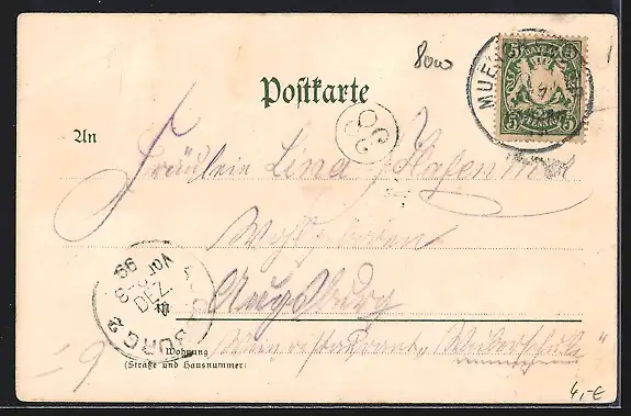 alte Ansichtskarte, gelaufen 1899, Eckknick oben re., guter Zustand