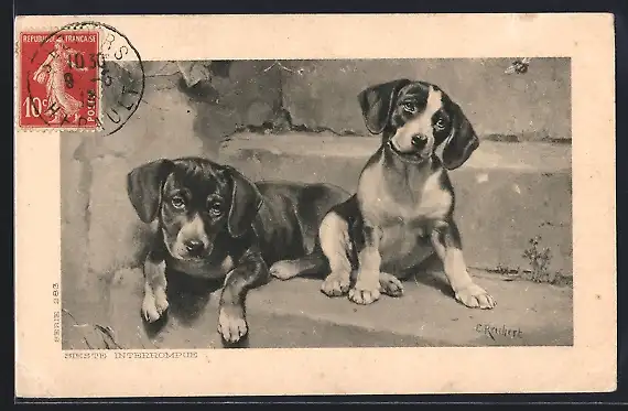 Künstler-AK Carl Reichert: Zwei schläfrige Dackel auf der Treppe