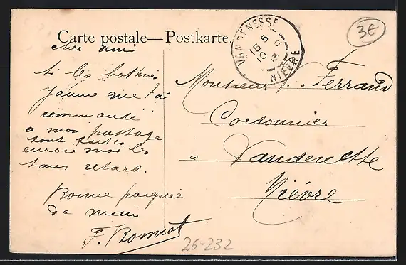 alte Ansichtskarte, gelaufen 1913, Eckknicke unten, guter Zustand