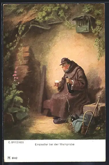 Künstler-AK Carl Spitzweg: Einsiedler bei der Weinprobe