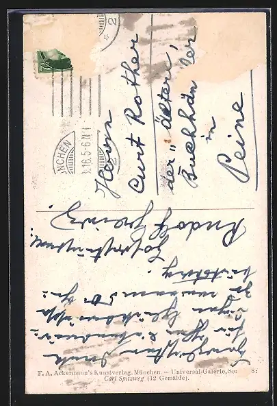alte Ansichtskarte, gelaufen 1916, Bugspur li. oben, rückseitig Oberflächenschaden, Briefmarke entfernt