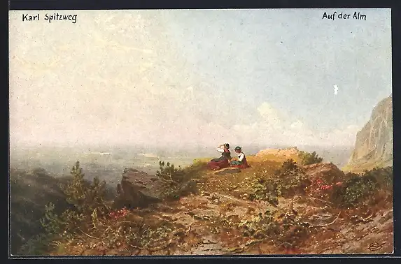 Künstler-AK Carl Spitzweg: Zwei Frauen auf der Alm